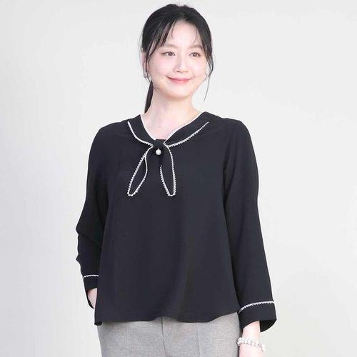 [애비뉴투지]엄마옷 피코드 스티치 리본 진주 라운드 여성 봄 가을 긴팔 블라우스 B01630