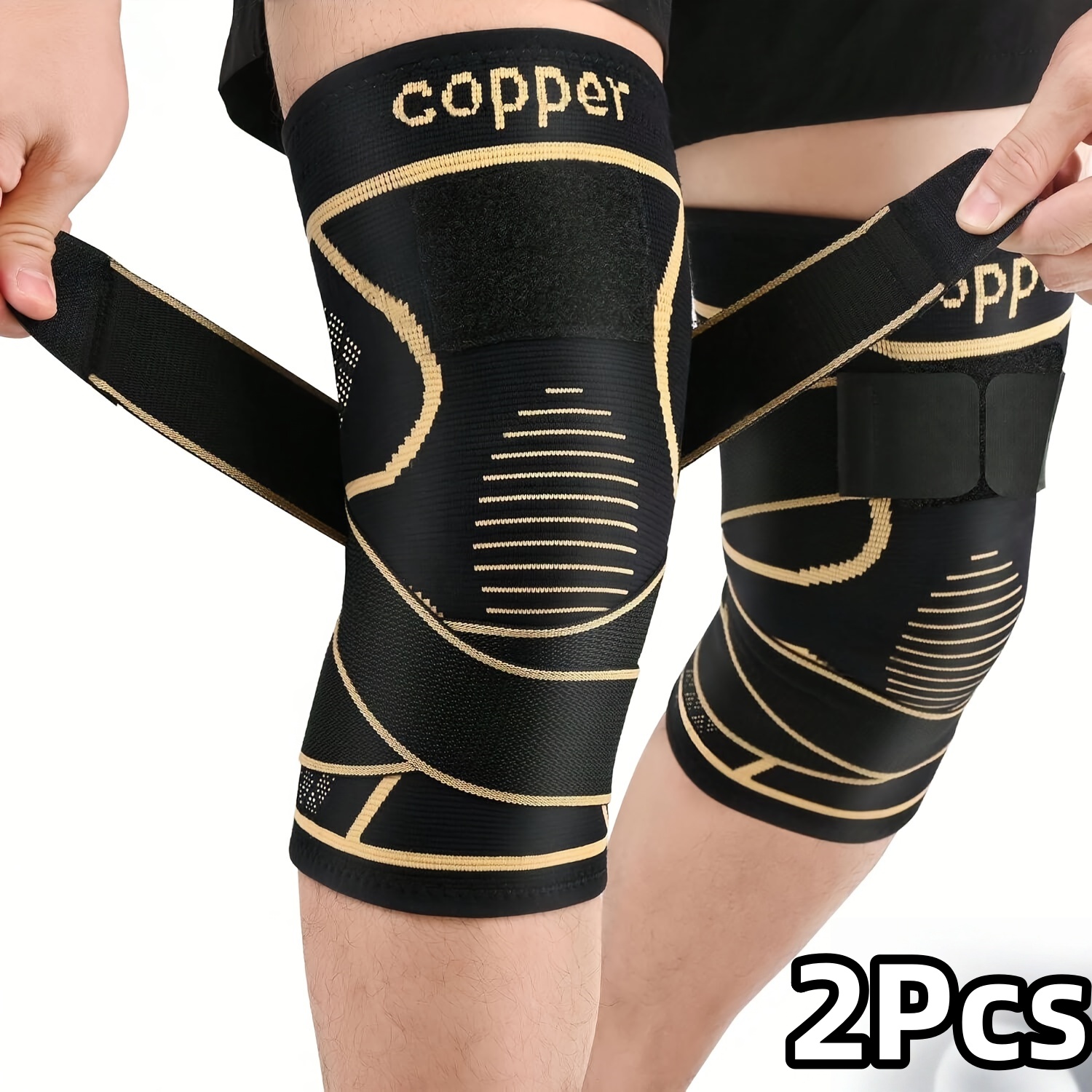 TEMU 2개입 구리 무릎 보호대 스트랩 포함 | 안정성을 위한 블랙 압박 슬리브, 나일론 혼방, 모던 디자인, 스트랩 패스트 클로저, 편안하고 내구성, 일상 활동에 적합 - Bdlnkakk