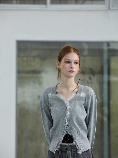 [에고이스트](강남점)[BLUE LABEL] 레이스 포인트 하트넥 니트가디건 (ER3OKG03)