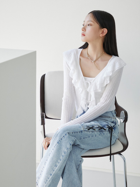 [에고이스트]레이스업 아일렛 포인트 V넥 가디건 (EP4CG260)
