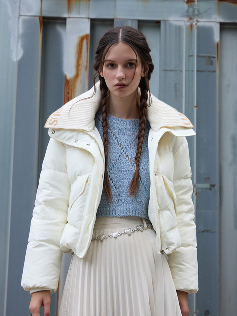 배색 오리털 코트 프리미엄 겨울 여성 자켓 여성경량패딩 방한 보온 패딩점퍼