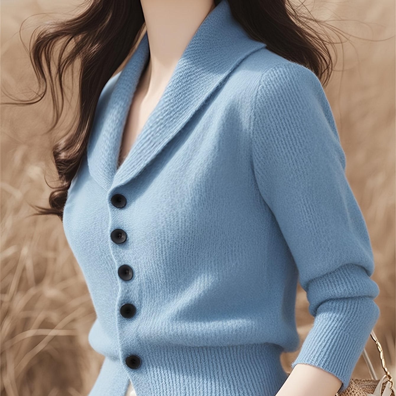 TEMU 여성용 우아한 블루 가디건 - 긴 소매, 라운드 넥, 라펠 칼라 버튼업, 신축성 및 편안함, 캐주얼 또는 드레시 의상에 완벽, 다용도 가디건 | 클래식 롱 슬리브 | 스트레치 니트웨어