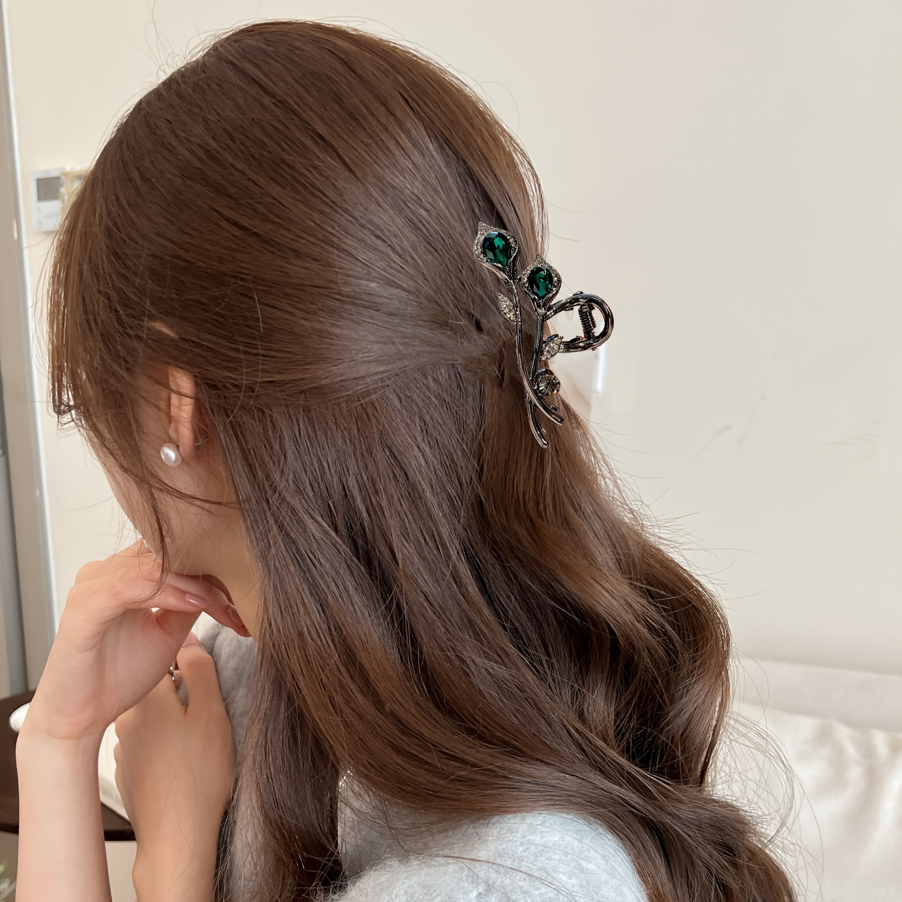 TEMU 1개 우아한 레트로 스타일 튤립 라인스톤 헤어 클립, 포니테일과 번에 어울리는 패션 액세서리, 여성용 일상 및 파티 또는 휴가 선물 추천, 미니멀 빈티지 디자인