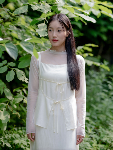[컬러바이넘버] 에밀리아 리본 베스트 스트랩 원피스