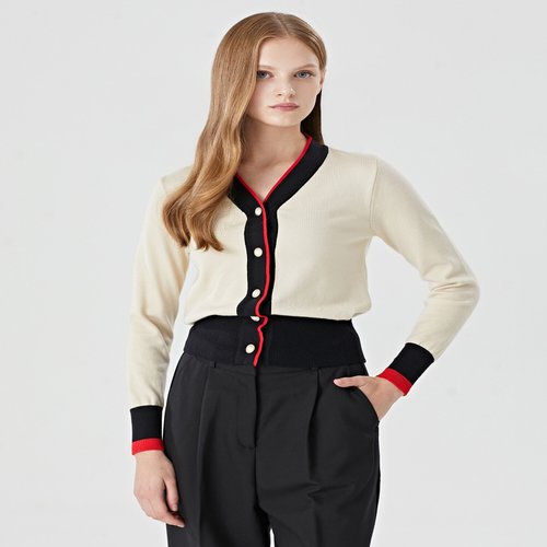 [미니멈에브리데이][미니멈 에브리데이]레이스 라인 배색 V넥 니트 가디건 (EB4CK031D)