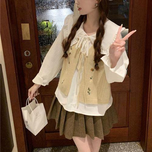 [에어플레인]플라워 자수 베스트 니트 조끼(2color)