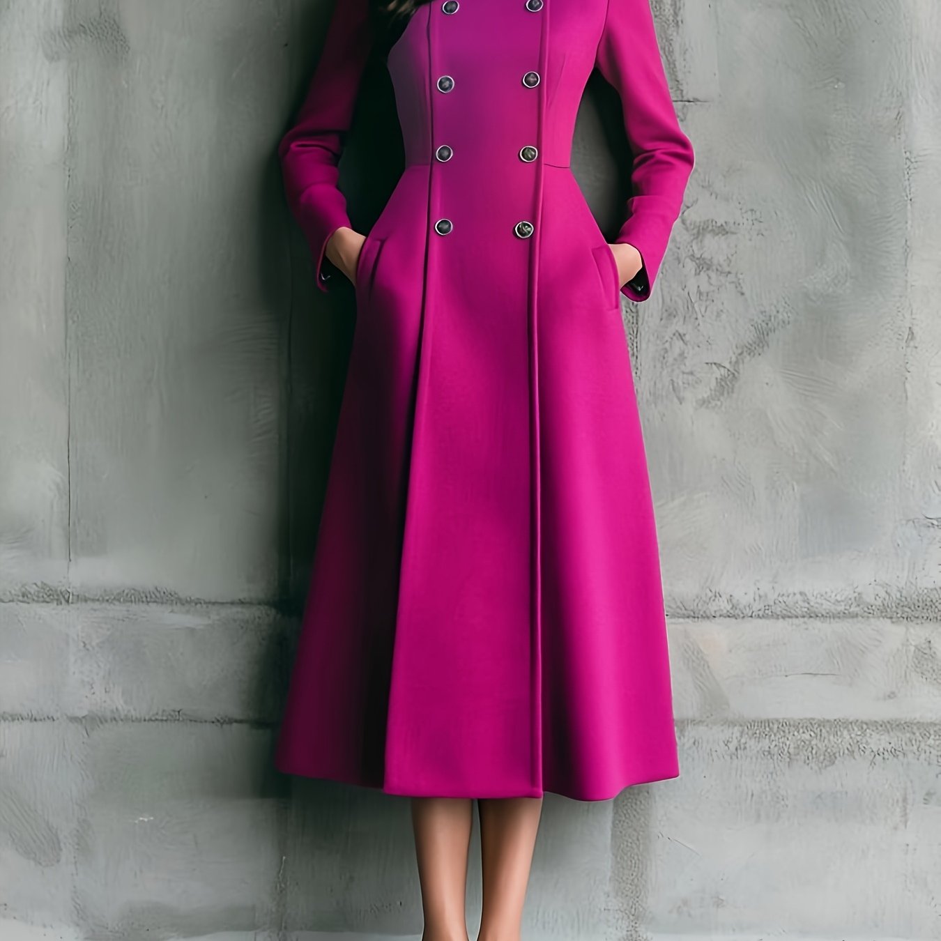 TEMU 여성 솔리드 컬러 더블 브레스트 트렌치 코트, 턴 칼라 | 버튼 디테일