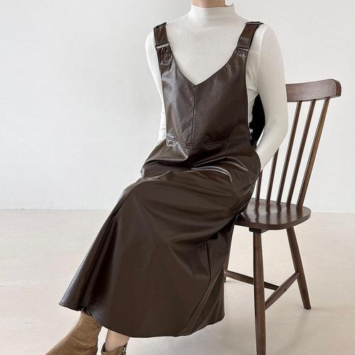 [다잇템]여자 에이라인 가죽원피스 컷아웃 롱원피스