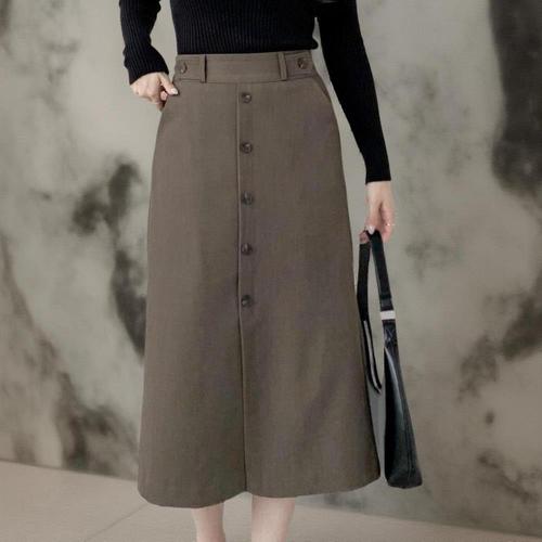 [다잇템]여성 고무줄 단추 에이라인 비죠 출근룩 롱