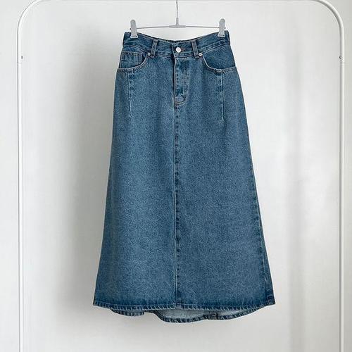 데님 원피스 여름 슬림 가을 스커트 여성 잘록허리 미디 에이라인
