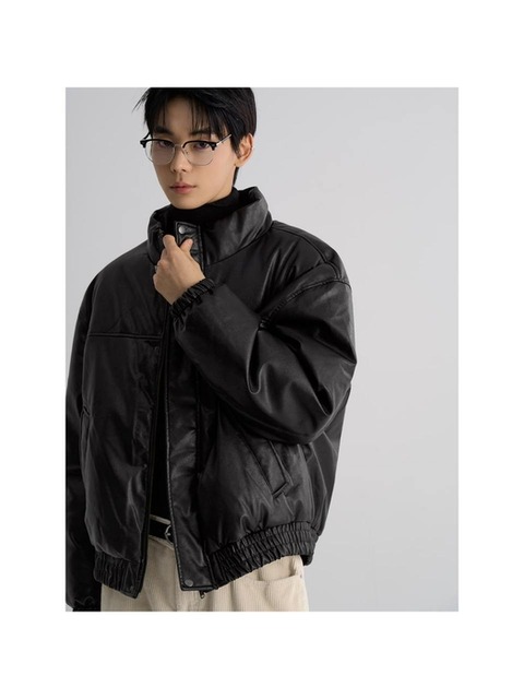 (425Y3ZLY25) [에잇세컨즈] 페이크 레더 논퀼팅 푸퍼 재킷 블랙