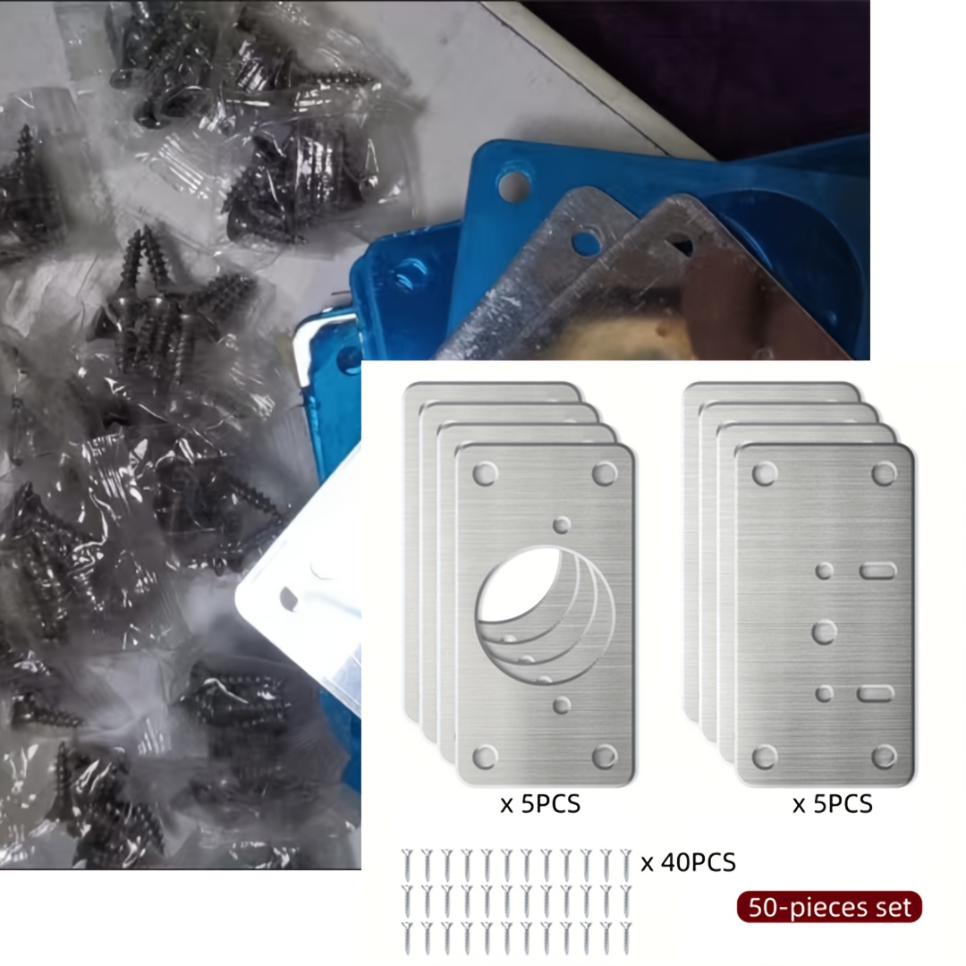 TEMU 50개 스테인리스 스틸 힌지 수리 키트 (수리 플레이트 10개 및 나사 40개 포함) - 주방, 가구 및 카세트 설치 및 수리를 위한 내구성 있는 도어 및 캐비닛 고정 플레이트 - 간편한 설치