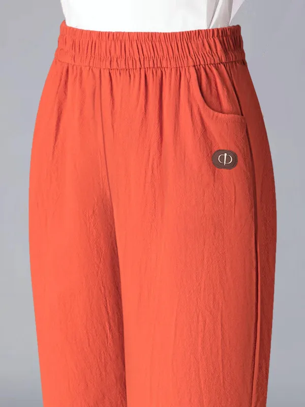 여름 얇은 면 린넨 루즈 캐주얼 스트레이트 팬츠 하이웨이스트 나인 포인트 하렘 팬츠 여성용 플러스 사이즈 엘라스틱 웨이스트