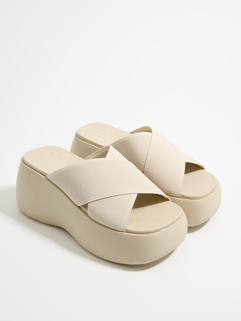 [빔바이롤라] [24SS] 빔바이롤라 아이보리 엘라스틱 하이 웻지 슈즈 B245AIS023IVC