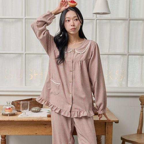 [알콩단잠]국내생산 체크파자마 여성잠옷 선염기모 라운지웨어