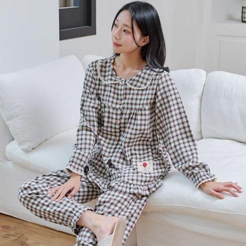 [알콩단잠]국내생산 여성잠옷 체크 파자마 선염기모 라운지웨어