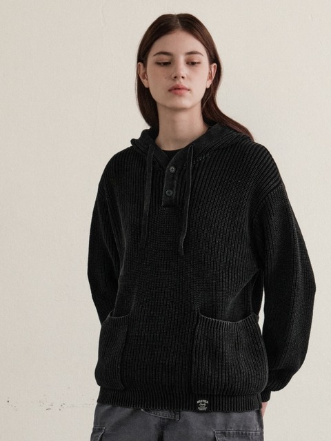 [힐리먼트] 웨스트 피그먼트 후드 니트 (블랙)