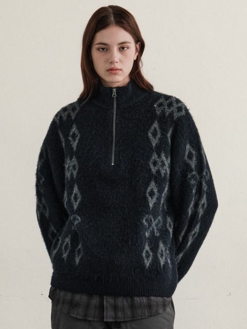 [힐리먼트] 유콘 패턴 자가드 니트 (네이비)