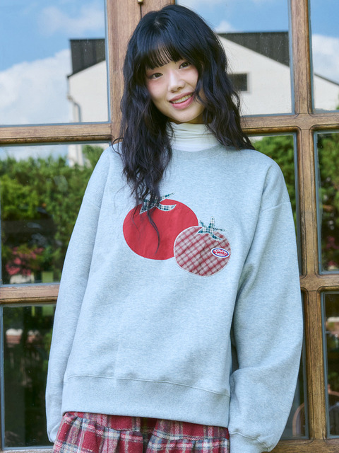 [엠블러] 엠블러 남여공용 Tomato 아플리케 자수 맨투맨 티셔츠 AMM1319-멜란지
