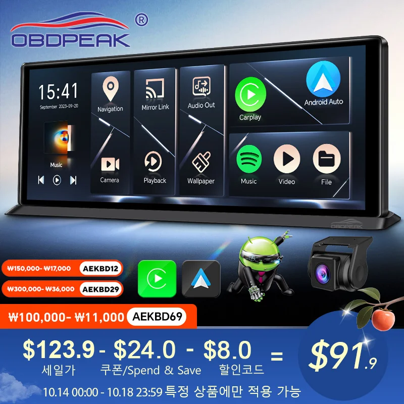 10/11.26 인치 대시 캠 4K 자동차 DVR 무선 Carplay 및 안드로이드 자동 GPS 네비게이션 비디오 레코더 대시 보드 듀얼 렌즈 Wifi FM AUX