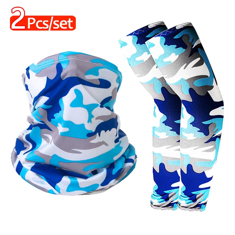 남녀 공용 카모 팔 슬리브 페이스 마스크 세트, 태양 보호, 냉각 통기성 보호 팔 슬리브, 러닝 사이클링용, 2 개/세트