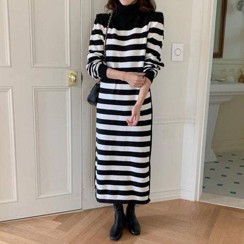 쉬폰 원피스 셔츠 여름 니트 벨트 폴라넥 롱니 WFKPDNE