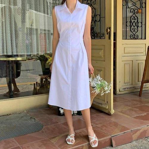 샵앤) 여성 카라넥 셔츠 린넨 여름 롱 원피스 WON-WDR-W8AC8BE