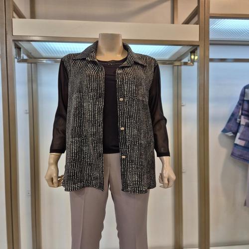 [쉐르담]카라넥 도트배색 쉬폰 여름 구부 블라우스 CH2-177JK