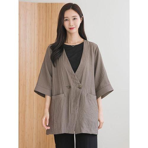 [드리다]여성 여름 린넨 브이넥 루즈핏 빅사이즈 7부 자켓 40-50대 미시 중년여성 엄마옷 캐주얼 출근 모..