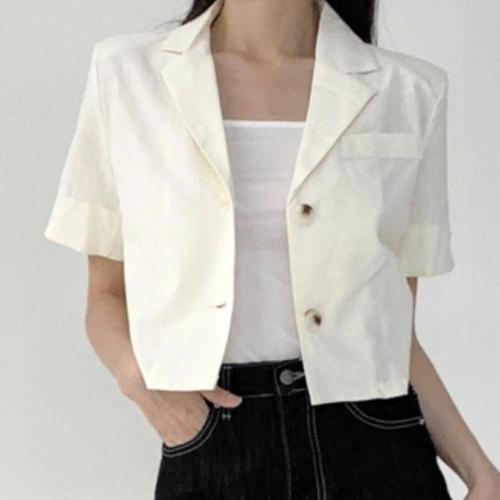 [에이치플러스몰]여름 여자 여성 반팔 린넨 세미 크롭 자켓