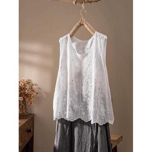 [셀러허브_여성트랜드패션]여름 자수 민소매 블라우스