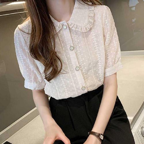[모노무드]모노무드 여성 자수 단추 반팔 블라우스 1P 프릴카라 셔츠 여름