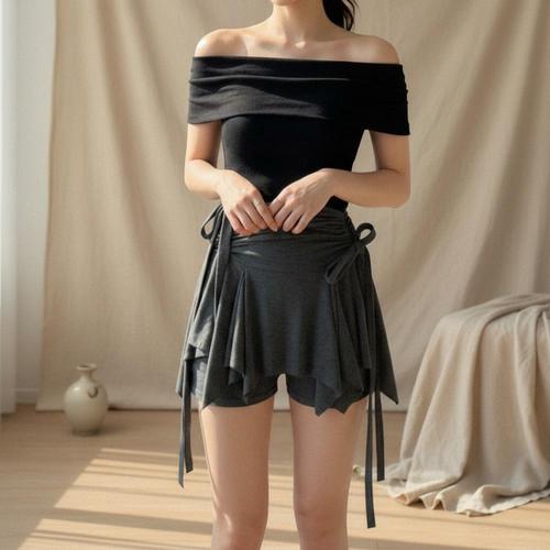 [옷자락] 여성 봄여름 셔링 언발 리본 미니 치마바지