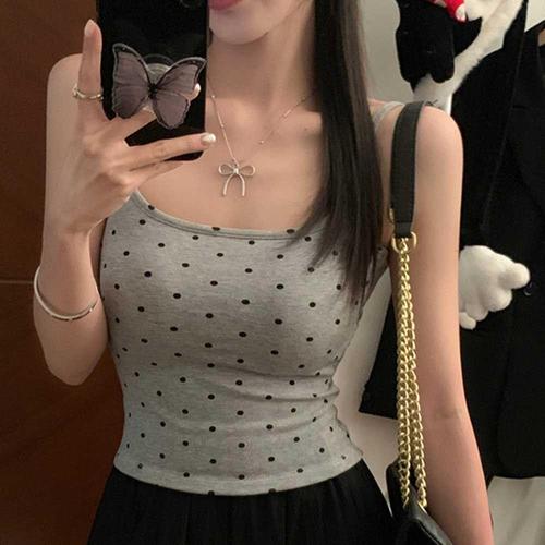 캡 내장 도트 패턴 끈 나시 탑 여름 데이트 룩 코디 WFL0IGQ
