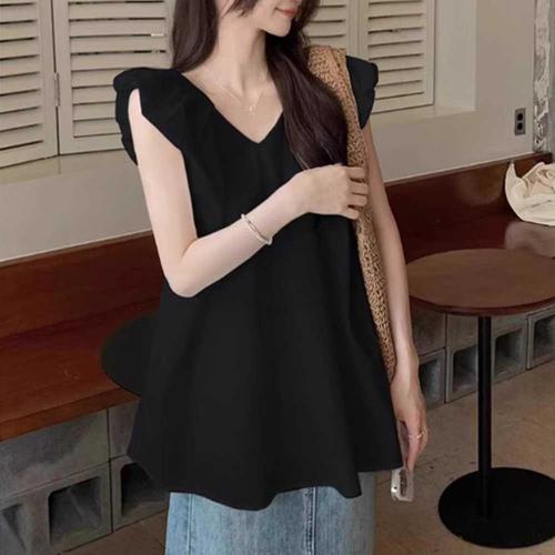 여름 외출 데이트 블라우스 코디 민소매 프릴 브이넥 WFL0IGB