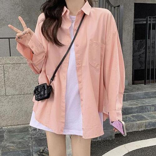 [셀러허브_여성트랜드패션]ONM 파스텔 컬러 루즈핏 긴팔셔츠 베이직 봄여름 앞포