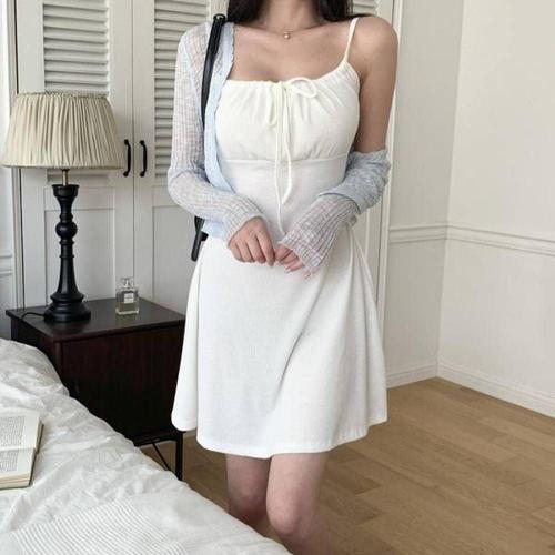 여름 트위드 하객 원피스 민소매 휴양지 뷔스티 WFKPDQR