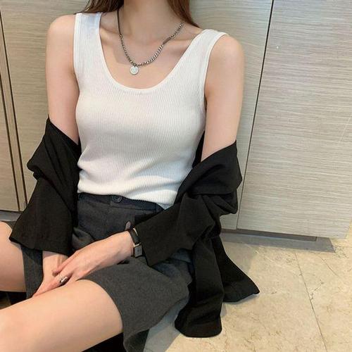 여성 슬림핏 여름 골지 데일리 이너 나시티 무지 라운드 민소매 티셔츠
