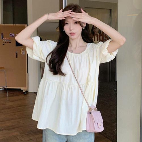 여성 소매 퍼프 루즈핏 블라우스 1P 백리스 여름 셔츠 WFHVZH8