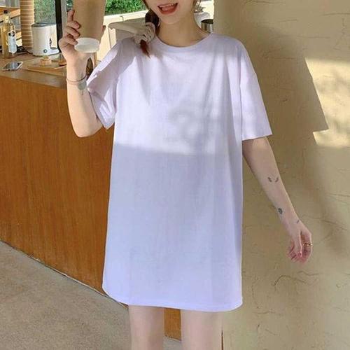 [셀러허브_여성트랜드패션]ONM 여름 박스티 오버 루즈 핏 롱 반팔 티셔츠 라운