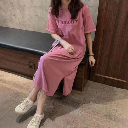 [모노무드]모노무드 xmfl-2 여성 여름 원피스 롱 반팔 등레터링 박스핏