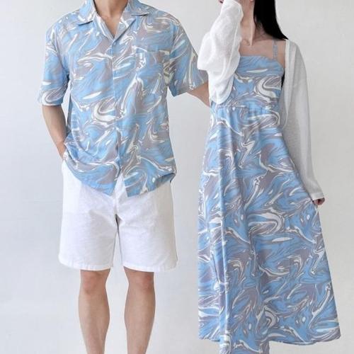 남성여성 커플 부부 하와이안 비치웨어 남방 원피스 커플룩 시밀러룩 여름커플룩
