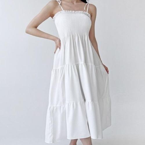 쁘띠엘라 체형커버 휴양지원피스 데일리 스모크밴딩 바캉스룩