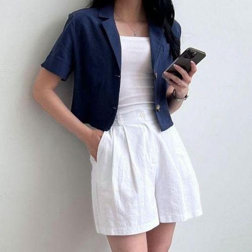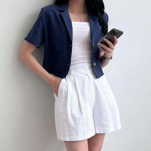 [에이치플러스몰]여름 아우터 면 여성 크롭 재킷 오피스룩 반팔 자켓