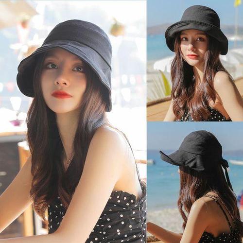[에이치플러스몰]여성 비치 모자 뒷리본 챙모자 여름 해변
