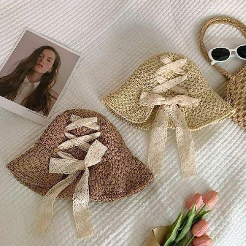 챙모자 러블리 리본 비치모자 여성 여름 보넷모자 베이지
