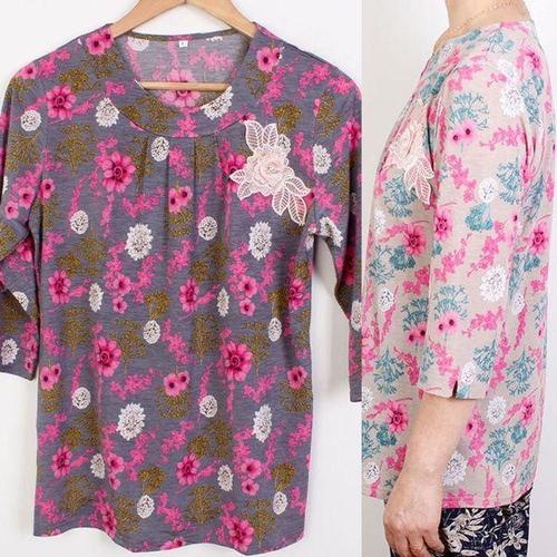 형제상회 할머니티 7부티 꽃무늬 라운드 여름 엄마옷 할머니옷 국산 0077SS05