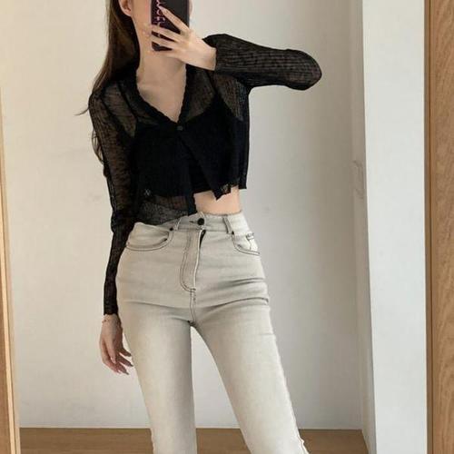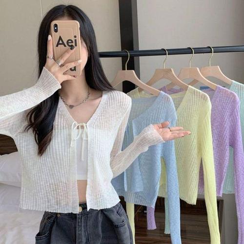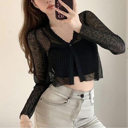 [셀러허브_여성트랜드패션]ONM 여자 시스루 얇은 소재 여리 스타일 크롭 가디건