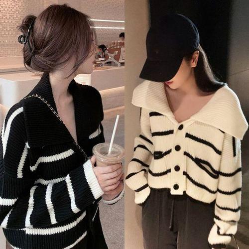 [끌레아]여성 컬러풀 데일리 가디건 패션 여리 단가라 카디건 크롭 니트 라운드 여성봄 자켓