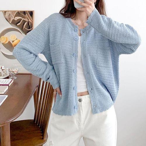 [에이치플러스몰]여자망사가디건 니트긴팔 데일리 여리 에어컨바람막이